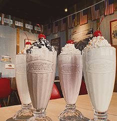 フレーバーはバニラ、ストロベリー、チョコ、キャラメルの4種をご用意しています。アメリカンな甘々濃厚シェイクをバーガーのお供にはもちろん、食後のデザートにも楽しめる是非、全種類制覇してみてください。
