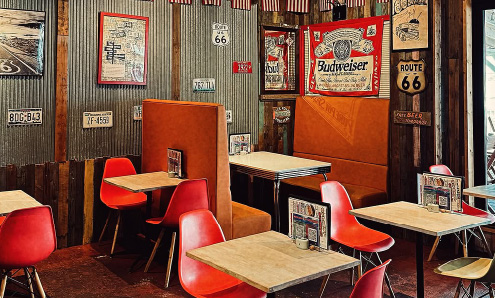 店内はオールドアメリカンテイストで、オールディーズが流れるお洒落な空間。