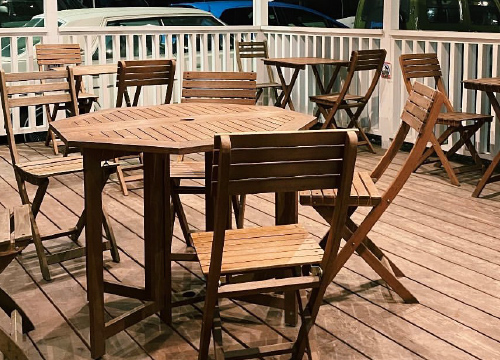さらに、丸みのある赤いイスが可愛らしく、内装もお洒落で落ち着ける空間です。テラス席も完備しているので、開放感のある外の風を感じながら、ペットと一緒に食事を楽しむことも可能です。